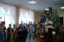 В школе 22 декабря состоялась Новогодняя елка для детей. Новогоднее настроение начиналось уже с самого входа в здание школы. Учителя и воспитатели школы вылепили из снега яркие, красочные фигуры Деда Мороза и Снегурочки и символ приходящего года Огненного Петуха. Ребята своими силами красочно оформили зал, украсили елку, выучили стихи, новогодние песни, сшили маскарадные костюмы. Учителя и воспитатели подготовили для детей интересное новогоднее представление.