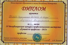 Команда ГБС(К)ОУ "Уруссинская С(К)ОШИ VIII- вида" награждена Дипломом Министерства образования и науки Республикки Татарстан за III-место в номинации "Лучший видеоролик" в IV-Республиканском конкурсе профессионального мастерства "Лучший по профессии-2015"