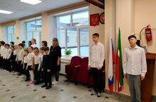 Учебная неделя началась с исполнения государственных гимнов и поднятия государственных флагов РФ и РТ.