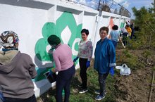 В рамках всероссийского субботника коллектив Уруссинской школы-интернат приняли участие в районной акции и обновили стены возле СК "Олимп".
