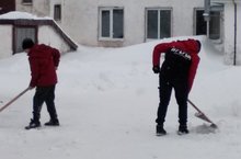 10 январь көнне Урыссу интернат мәктәбе укучылары һәм укытучылары мәктәп яны территориясен кардан арындырдылар.