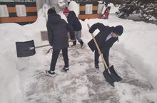 В рамках акции «Мы помним» ученики школы убрали от снега территорию памятника.