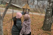 В каникулы учащиеся не забывали кормить птиц. Подсыпали корм в кормушки на школьном дворе.