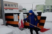 Ученики 6-х классов с пользой провели свободное время и очистили памятник от снега.