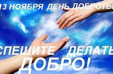 Очень доброй традицией для многих стран стало ежегодное празднование 13 ноября Всемирного дня Доброты датой для которого был выбран день открытия в 1998 году в Токио 1-й конференции Всемирного движения доброты Творить добрые дела – невероятно просто, добро не измеряется деньгами, порой – не требует много времени и сил, главное – начать. Даже просто добрая улыбка незнакомому человеку – уже способна творить чудеса, в том числе и для самого человека, кто это Добро делает. Ведь помимо того, что добрые дела повышают всем настроение, они ещё и как нельзя лучше влияют на самочувствие, повышают жизненный тонус.