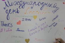 Самый "вежливый" праздник Международный день "спасибо" отмечается во всем мире 11 января. Основная идея проекта - вспомнить, что есть такое прекрасное слово "СПАСИБО". Вроде такое маленькое, простое, а такое ёмкое, доброе и чистое. Вот и в нашей школе сегодня прошла акция, посвященная этому дню, ребята нарисовали плакат и на всех языках мира сказали друг другу "СПАСИБО".