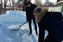 Ученики 8 «А» класса поздравили ветерана школы Соловьеву В.П. с Международным женским днем и помогли убрать снег во дворе.