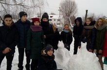 Вереницею гусей.С радостью встретили первый снег ученики школы.