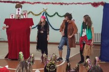 Сегодня в школе прошли новогодние елки у учащихся 5-11 классов. 11-й класс под руководством Новиковой Е.В. подготовили и представили ребятам интересный сценарий. Сами же ученики выступили перед Дедом Морозом с песнями, танцами и сценками.