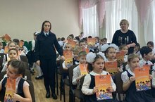 Работники ГИБДД провели с учениками начальной школы инструктаж по технике безопасности поведения на дорогах. Ученики первых классов получили памятные подарки.