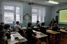 Учитель Набиуллин Д. Г. провел открытый урок по геометрии в 8 классе на тему: "Соотношение площадей сходящихся треугольников"./Укытучы Набиуллин Д.Г. 8 нче сыйныфта "Охшаш өчпочмакларның мәйданнары чагыштырмасы" дигән темага геометриядән ачык дәрес күрсәтте.