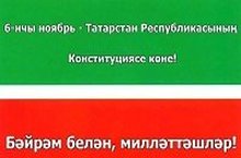 Сезне Татарстан Республикасы Конституциясе көне белән чын күңелдән котлыйбыз. 6 ноябрь яңа тарихта иң истәлекле көннәрнең берсе булды. Татарстан Республикасы Конституциясе – төрле милләт, сәяси караш һәм төрле дин вәкилләренең ихтыярына таянып кабул ителгән, күпмилләтле халкыбыз сайлап алган принципиаль сәяси юлны билгеләгән төп канун ул.