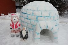 Мәктәп алдын укучылар ясаган кар сыннары бизи.