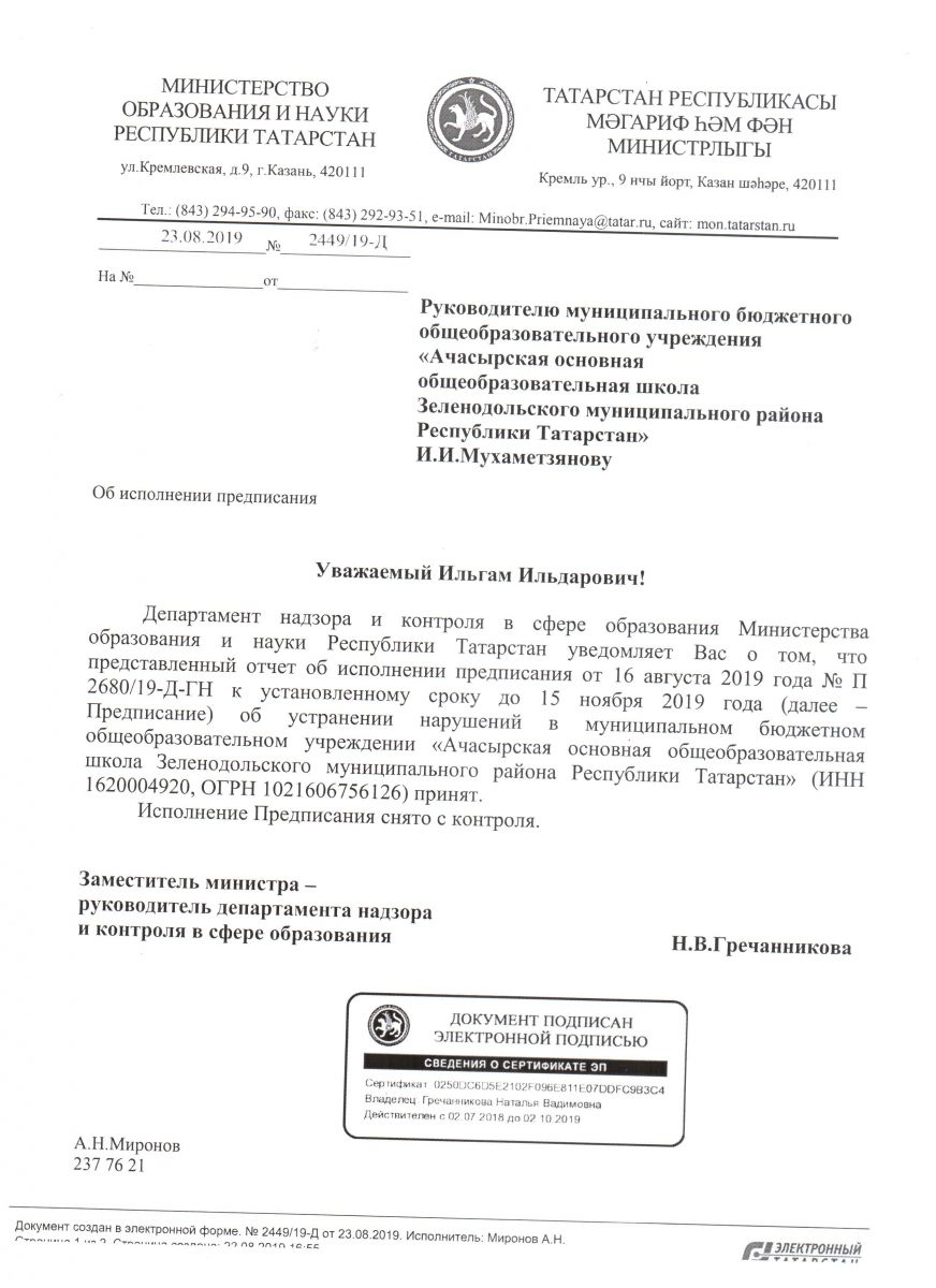 Предписания органов осуществляющих государственный контроль в сфере образования