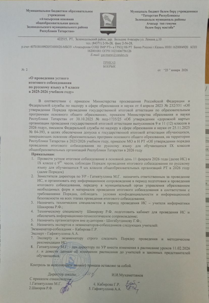 | Короткое название: | МБОУ "Ачасырская ООШ ЗМР РТ" |