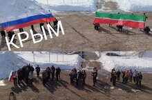 Учащиеся 5,6,7,8,9 классов и учителя нашей школы объединились на патриотической акции, посвященной Дню воссоединения Крыма с Россией.