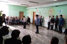 Сегодня в нашей школе состоялся конкурс "Битва хоров" в рамках месячника военно-патриотического воспитания. Каждый класс выбрал патриотическую песню и спел хором под минусовку. В требованиях также были единая форма и умение приподнести себя на сцене.