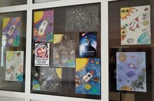 Выставка рисунков учащихся начальных классов к Дню космонавтики.