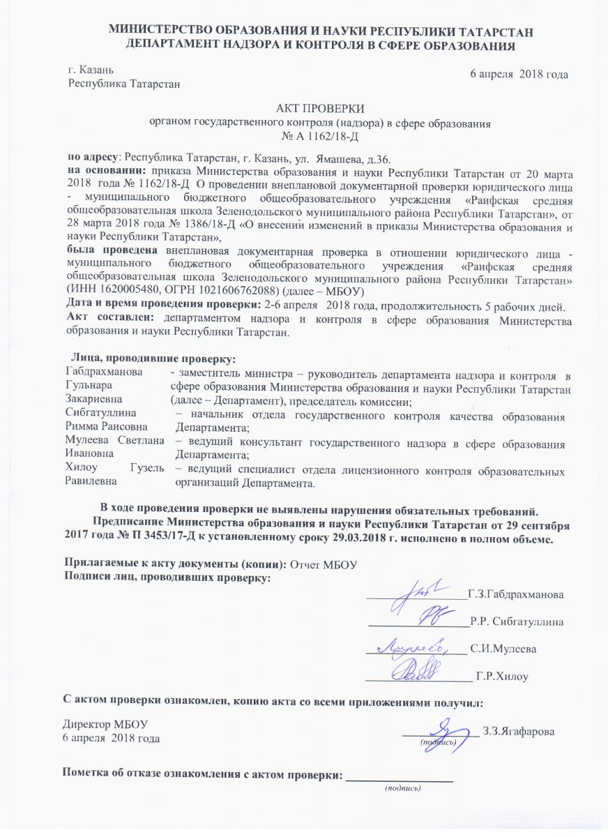 Акт проверки органом государственного контроля в сфере образования за 2017 год