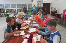 Воспитанники пришкольного лагеря сегодня отправились в "Город мастеров" сельского дома культуры. В клубе их радушно встретила хозяйка и домовой. Ребята разделились по интересам: кто помладше - рисовали, выполняли поделки из яичной скорлупы, а ребята постарше учились вырезать из бумаги бабочку и шить игольницу. Также прошел и шахматный турнир. Закончилось мероприятие веселыми танцами.