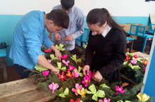 Һәр елдагы традицияне саклап, 9 нчы сыйныф , чыгарылыш сыйныф укучылары БӨЕК ВАТАН сугышында һәлак булучы Ватандашларыбыз хөрмәтенә чәчәк бәйләменнән венок ясадылар.