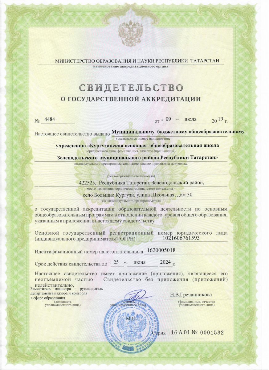 Муниципальное бюджетное общеобразовательное учреждение «Кургузинская основная общеобразовательная школа Зеленодольского муниципального района Республики Татарстан/"Татарстан Республикасы Зеленодол муниципаль районының Карауҗа төп гомуми белем бирү мәктәбе" муниципаль бюджет гомуми белем бирү учреждениесе.