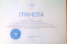 На заседании тематической комиссии "Географическое образование" Регионального отделения ВОО "Русское географическое общество" в РТ директор школы Сабирова З.М. и учитель начальных классов Гарифуллина Г.Ю.были награждены грамотами за большой вклад в развитие географического и популяризацию географических знаний среди учащейся молодежи и в связи со 100-летием подготовки учителей географии в КФУ.