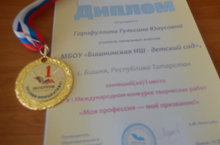 Учитель нашей школы Гарифуллина Гульсина Юнусовна участвовала в I Международном конкурсе творческих работ "Моя профессия- мое призвание", который был организован Образовательным центром "INCEPTUM" г.Чебоксары. За отличную работу она была награждена медалью и Дипломом.Молодец!