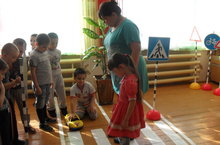 Бүген балалар белән ПДД кабинетында булдык. Анда җәяүлеләр йөри торган юл аша йөрдек, машиналар белән уйнадык, юл билгеләрен искә төшердек.