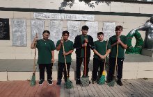 8нче сыйныф укучылары Бөек Ватан сугышы елларында һәлак булганнарга багышланган һәйкәл территориясен җыештырдылар.