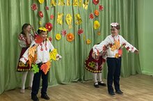 Несмотря на то,что осень-очень унылое время года,маленькие дети умеют радоваться желтым листьям, которые шуршат под ногами, и тому, что во время проливного дождя они стоят под зонтиками.Вот почему праздник осени-один из самых любимых детских праздников.Мероприятие прошло очень весело.Гостем была королева осени с лисой.Дети пели, танцевали, играли в игры.