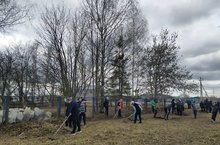 Бишнинская школа присоединилась к Всероссийскому субботнику. Все учителя, сотрудники школы, учащиеся убирались на территории.