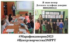 В рамках Всероссийской добровольческой онлайн-акции "Марафон доверия-2023" в объединениях Центра творчества проведены тематические занятия по информированию детей и подростков о возможности получения экстренной психологической помощи по детскому телефону доверия 88002000122.