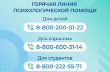 Минпросвещения и Минобрнауки России запустили горячую линию психологической помощи.