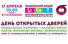 Лицей-интернат для одаренных детей с углубленным изучением химии – филиал ФГБОУ ВО «КНИТУ» приглашает на «День открытых дверей». Мероприятие состоится 17 апреля 2021 года в 10:00 часов. Администрация и педагогический коллектив лицея ответят на вопросы, касающиеся поступления, обучения и проживания. Также в этот день пройдет очный этап вступительных экзаменов.