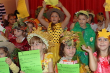 В нашем детском саду стало уже традицией проведение выставки поделок из природного материала. Работа с природным материалом приобщает детей к искусству, к творчеству, формирует экологическое сознание. Этой осенью в рамках программы Эко-школы/Зелёный флаг мы решили добавить бросовый материал и назвали выставку "Осенние фантазии".