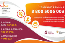 C 1 июля 2021 года Ассоциация организаций по защите семьи приступила к реализации семейно-демографического проекта «На защите семьи и детства». В рамках проекта на все субъекты РФ открыт федеральный номер Семейной линии 8-800-3006-003, который работает ежедневно и круглосуточно, предлагая заявителям безвозмездную социально-информационную, консультативную, юридическую и иную помощь.