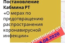 О мерах по предотвращению распространения в Республике Татарстан новой коронавирусной инфекции (изменениями на 2 сентября 2020 года) 08.09.2020