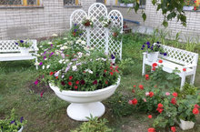 24 июля коллектив дошкольного учреждения подключился к участию в муниципальном конкурсе «Город миллиона цветов». Этим летом наш розарий пополнился новыми сортами роз: высажено более 50 кустов, которые постепенно набирают свою силу, радуя детей и взрослых своим разноцветьем. Особая гордость руководителя ДОУ новое оформление цветочных насаждений: деревянные скамеечки, декоративная арка с висячими кашпо и вазон, засаженный яркими цветами.