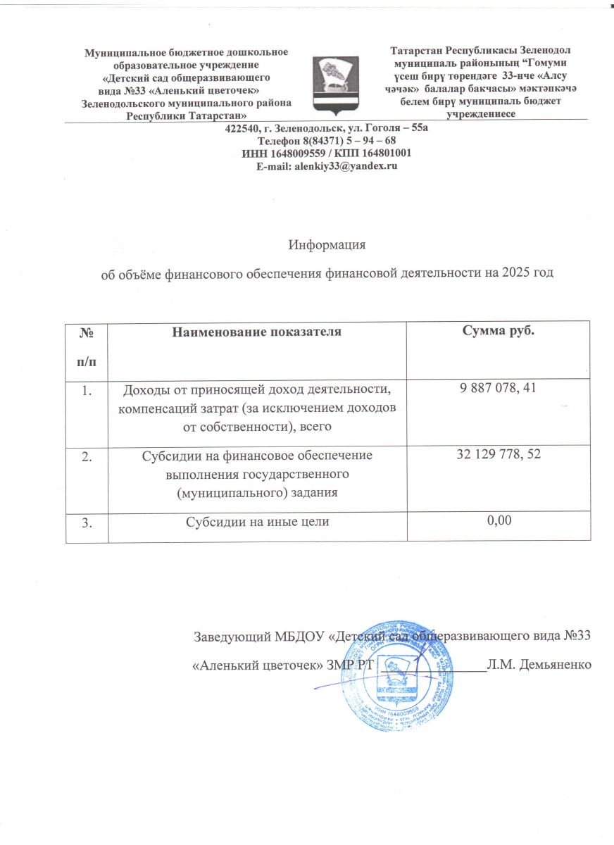 Муниципальное бюджетное дошкольное образовательное учреждение "Детский сад общеразвивающего вида №33 "Аленький цветочек" Зеленодольского муниципального района Республики Татарстан"/ Татарстан Республикасы Зеленодол муниципаль районының “Гомуми үсеш бирү төрендәге 33-нче «Алсу чәчәк» балалар бакчасы” мәктәпкәчә белем бирү муниципаль бюджет учреждениесе
