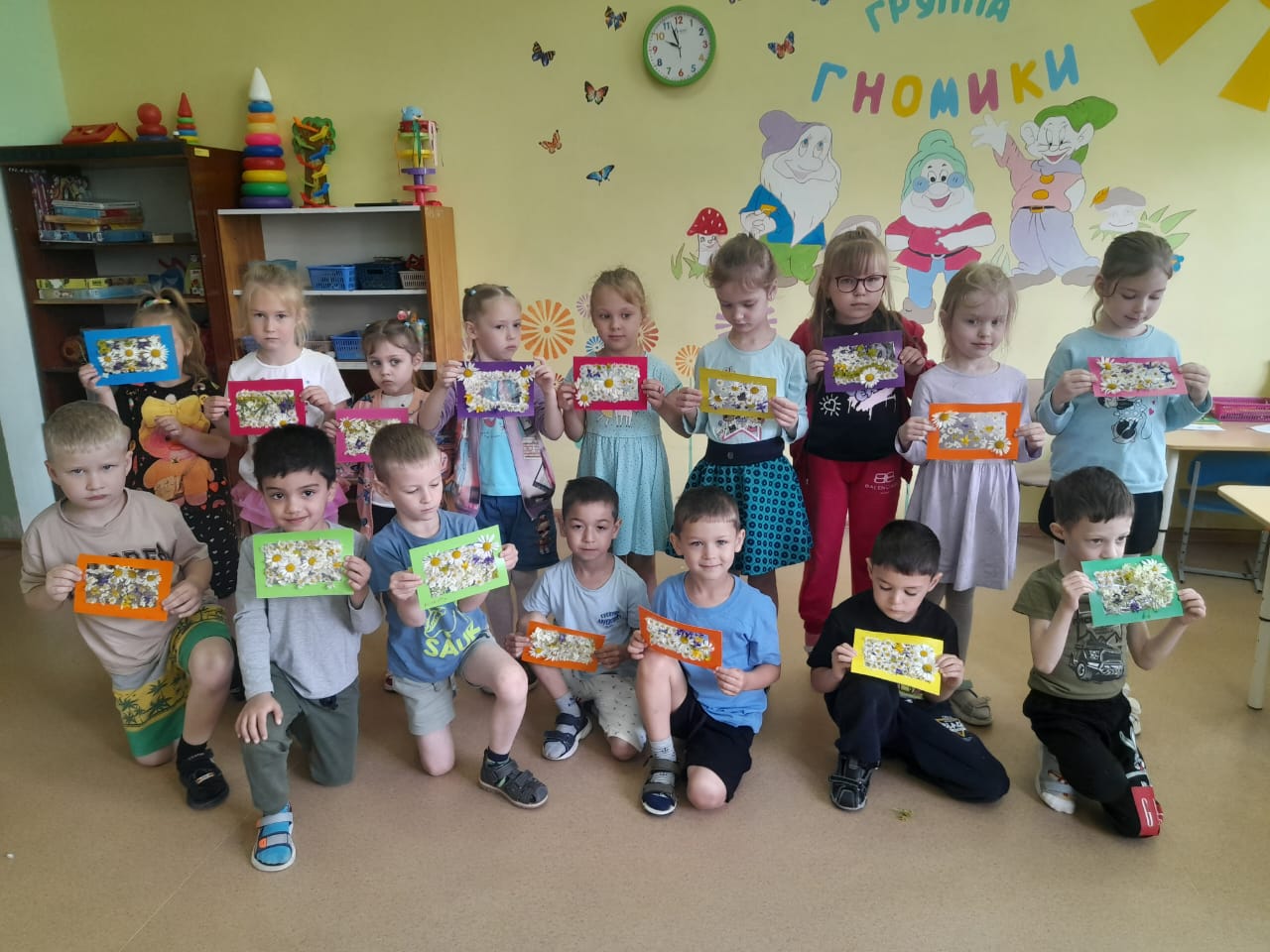 Өлкән төркемдә тәрбияләнүчеләр иҗади фантазия һәм табигать матурлыгы дөньясына чумдылар, чәчәкләрдән оригиналь аппликацияләр ясадылар. Педагоглар җитәкчелегендә нәниләр төрле үсемлекләрнең таҗ яфракларын, сабакларын кулланып, табигый материаллардан картиналар ясау сәнгатен үзләштерделәр. Һәр бала флора дөньясына үз карашын белдерде, яктылык һәм оригинальлек белән тулы уникаль композиция булдырды.Безнең кечкенә осталарыбыз үзләренең хезмәт нәтиҗәләрен дуслары һәм өлкәннәр белән уртаклашырга, үзләренең илһам һәм тырышлык җимешләрен күрсәтергә шат иделәр.