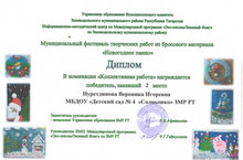 Наш детский сад принял участие в муниципальном конкурсе творческих работ из бросового материала "Новогоднее панно".Воспитатель Нуретдинова В.И. и группа №8 заняла 2 место.Молодцы!!!