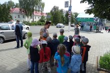 25 июля 2014г. в детском саду состоялось мероприятие по профилактике детского дорожно- транспортного травматизма «Мой друг – Светофор!». В рамках этого мероприятия методически грамотно проведены викторины, беседы, познавательные подвижные игры, конкурсы рисунков, аппликаций и поделок из пластилина. С детьми группы №7, которая теперь у нас стала старшей возрастной, проведена первая в их жизни организованная экскурсия. Опытные педагоги познакомили детей с дорожными знаками на улицах города вблизи детского сада, научили переходить проезжую часть на зелёный свет светофора, а также параллельно посетили Вечный огонь, сфотографировались у фонтана и у красивых эстетичных малых архитектурных форм, которыми администрация нашего города заботливо украсила улицы.