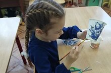 День Гжели 30.01.2026 30 января, в честь Дня гжельской росписи в старшей группе N2 прошло увлекательное занятие по технике декупажа. Дети погрузились в удивительный мир русской народной культуры, открывая секреты традиционного искусства, которое уже много лет украшает бытовые предметы и радует глаз своей неповторимой красотой. Занятие началось с рассказа воспитателя о происхождении гжельских узоров — знаменитых сине-белых мотивов, пришедших к нам из подмосковной деревни Гжель. Маленькие художники узнали историю появления знаменитой росписи и познакомились с основными элементами орнамента: изящными завитушками, тонкими линиями и нежными цветами, создающими уникальную атмосферу старины. Затем дети приступили непосредственно к творчеству: каждый выбрал понравившийся рисунок и перенес его на подготовленную поверхность, используя технику декупажа. Ребята проявили чудеса терпения и аккуратности, стараясь аккуратно наклеивать бумажные мотивы, создавая собственные уникальные изделия. Итогом занятия стали замечательные поделки, сделанные своими руками. Все участники остались довольны результатом своего труда, ведь каждая работа получилась индивидуальной и выразительной. Этот опыт вдохновил детей продолжить изучение народного творчества и попробовать себя в создании новых произведений декоративно-прикладного искусства