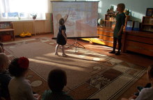 Сегодня в детском саду прошли традиционные осенние развлечения. Дети пели песни и читали стихи об осени, а также в гости к ним заглянули лесные обитатели с красавицей осенью.