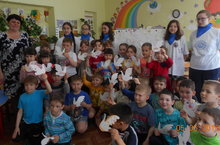 5 мая воспитанники подготовительной группы №1 и учащиеся Лицея №1 изготовили бумажных голубей и создали совместный плакат под названием " Голубь мира", на котором написали свои призывы , пожелания о дружбе , мире во всем мире и толерантности друг другу.