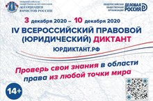 С 3 по 10 декабря 2020 года в целях оценки уровня правовой грамотности населения пройдет Четвертый Всероссийский правовой (юридический) диктант. К участию приглашаются учащиеся 8-11 классов, родители и учителя!