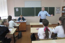 В рамках профориентационной работы в гимназии состоялась встреча со специалистом по работе с молодежью ОАО "Завод им. Горького" Анисимовым Д.С., который рассказал учащимся 11 класса о выборе будущей профессии и о преимуществах обучения по целевому направлению.