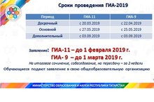 Досрочный период ГИА-11 с 20.03.2019; ГИА-9 с 22.04.2019.