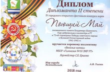 Дипломантов II степени муниципального конкурса-фестиваля "Поющий май!. Руководитель хорового коллектива - Ершова Светлана Борисовна. Молодцы!!! Мы гордимся вами!!!